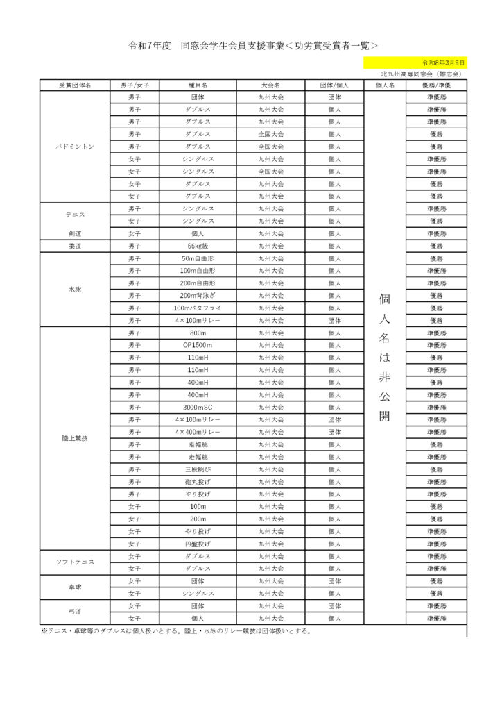同窓会(雄志会)としては、後輩諸君がいろいろな競技や分野で活躍する姿を見て先輩として大変誇りに思います。みなさんがこれまで積み重ねてきた努力を今後も継続し頑張ることは勿論として、これまでの経験を次の世代へ引き継いでいき、結果本校の名誉・知名度向上が図れることを願っています。