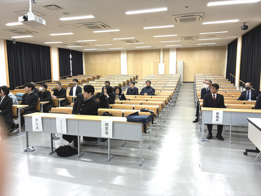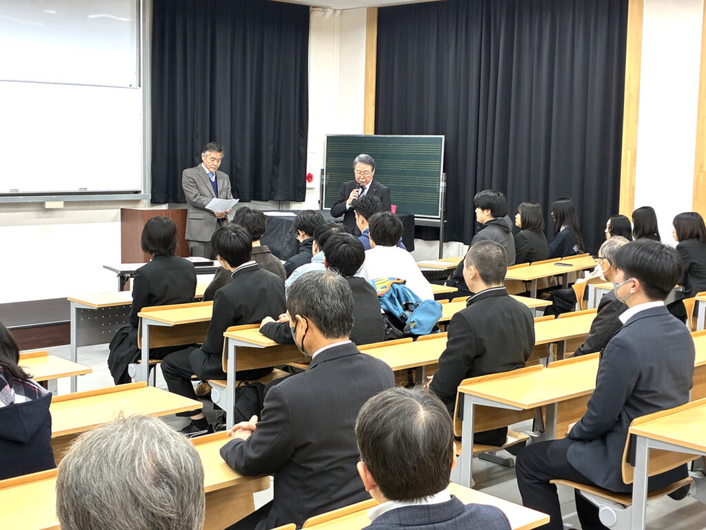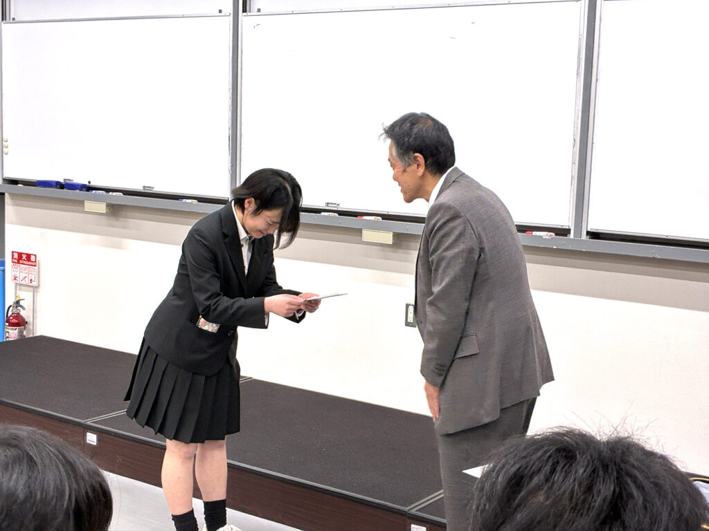 授与式は、3月9日(月)11時30分から本校の階段教室で、同窓会からは安部同窓会長、橋本副会長、木嶋副会長、学校からは片山校長、南事務部長、佐田総務課長、その他関係者の見守る中行われました。授与式の様子並びに受賞者一覧は、添付資料でご確認ください。